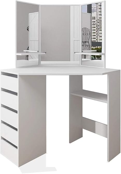 Modern Dressing Table Storage Cabinet For Bedroom Bathroom Corner Vanity Table White Makeup Desk With Three Fold Mirrors And 5 Drawers Toxz Vanity Table Set Vanities Vanity Benches Home Kitchen Guardebem Com from i.ebayimg.com We have a variety of options, including wall mirrors, vanity mirrors, and floor mirrors. Shop for corner vanity table bedroom online at target. Appealing bathroom style with green tiles. Find the perfect mirror for your room or vanity at star furniture. Here are the fantastic ideas for bathroom design with corner vanity for you. It's quaint, it fits the smaller space and still provides the function you need to larger bedrooms or those that need a bit of extra oomph for the bare corners, this vanity will work. In reality, these understated units can make or. 2 piece black tri folding mirror vanity makeup table set bathroom with stool and drawer bedroom set.